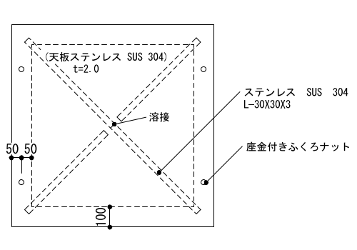 3) 天板、カバープレートのステンレス仕上げはNo.2B程度とする。